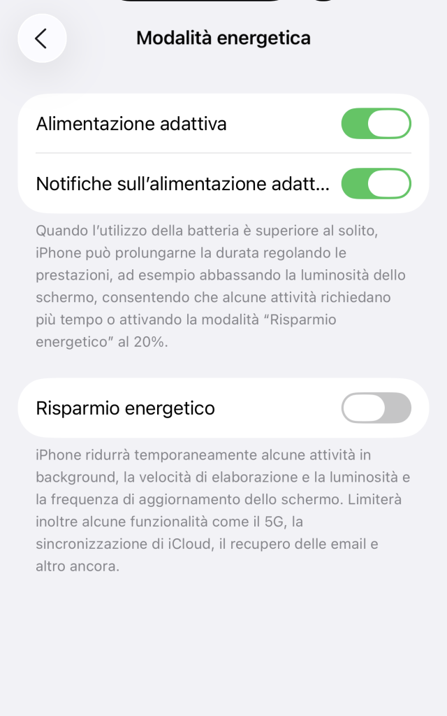 - Nei giorni di uso intenso, iPhone cerca in automatico modi per risparmiare energia.